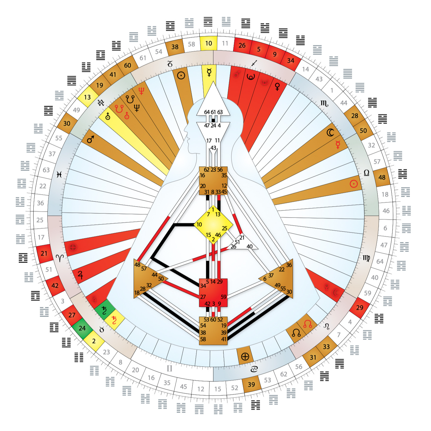 Human Design sử dụng thông tin về thời gian ( Năm-Tháng-Ngày-Giờ) và nơi sinh để tính toán ra Biểu đồ Human Design cá nhân, còn gọi là BodyGraph. Nói cụ thể hơn, vị trí của các hành tinh và ngôi sao tại thời điểm bạn sinh ra và 88 ngày trước đó được sử dụng để tính toán ra biểu đồ hoàn chỉnh. Thoạt nghe có vẻ giống như chiêm tinh học, nhưng Human Design ứng dụng cả Kinh Dịch, Hệ Thống Luân xa và Cây Sự Sống của Kabbalah để vạch ra bản đồ năng lượng sống đặc thù của một người. Nó giúp bạn hiểu tại sao mình lại có thói quen, khuôn mẫu tâm lý – hành động như vậy. Bạn hiểu được những điểm mạnh, năng khiếu riêng, những khía cạnh dễ tổn thương và tiềm năng phát triển từ đó.