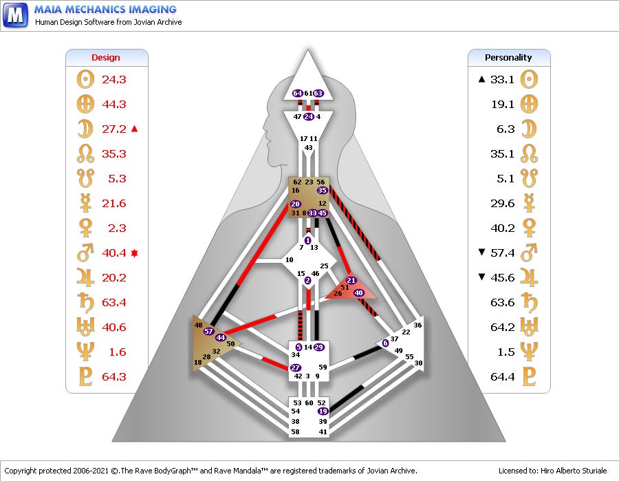 Một kênh khác là Kênh Tiền bạc 45-21. Giống với bạn khách sáng nay mình gặp. Đây là khía cạnh về vật chất trong design của JK. Và nó cũng khiến cho bà thuộc Nhóm Manifestor, một Ego Manifestor hoặc nói đúng hơn là Splenic Manifestor với Ego xác định. Manifestor, những người sinh ra để gây ảnh hưởng, và sáng tạo từ không thành có.